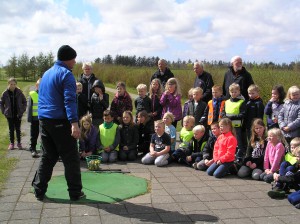 Klubbens professionelle træner, Danny Sejer, viste og forklarede det vigtigste omkring golfslag og sikkerhed. Efter at have set Danny slå et par fine slag, var børnene selv friske på at gå i gang.